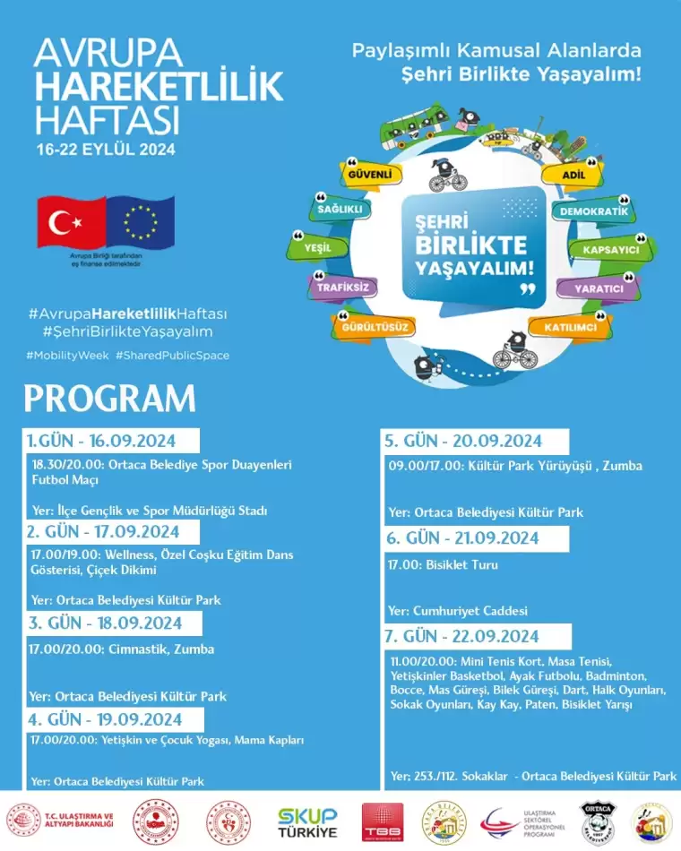 Avrupa Hareketlilik Haftası, Tüm Avrupa ile eş zamanlı olarak Ortaca’da16 – 22 Eylül tarihleri arasında “Paylaşımlı Kamusal Alanlar” temasıyla kutlanacak.