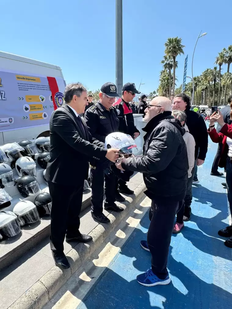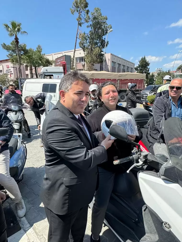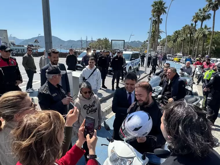 Bugün saat 14:00’da Marmaris Atatürk Meydanı’nda İlçe Emniyet Müdürlüğü Trafik Tescil ve Denetleme Büro Amirliği ekipleri tarafından Motosiklet Denetimi yapıldı. Marmaris Kaymakamı Nurullah Kaya ve İlçe Emniyet Müdürü Selçuk Özdemir’in katılımları ile gerçekleşen denetimde, kaskı olmayan sürücülere gerekli bilgilendirmenin yapılmasının ardından standart kask dağıtılarak daha güvenli ve kurallara uygun olarak trafikte yer almaları sağlandı.