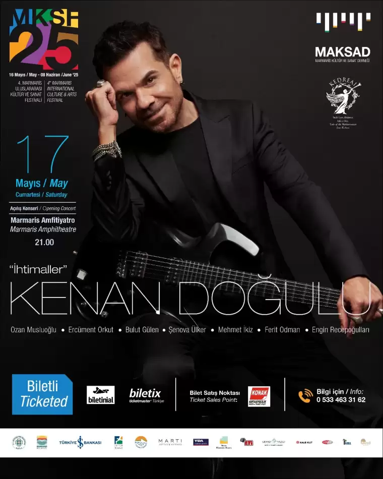 Marmaris Kültür Ve Sanat Festivali’nin ilk konserinde, Kenan Doğulu 17 Mayıs akşamı Marmaris Amfitiyatro’da sevenleri ile buluşacak ve “İhtimaller” adlı albümünden eserler sunacak. Caz formundaki bu eserlere Şenova Ülker, Bulut Gülen, Engin Recepoğulları, Ercüment Orkut, Ozan Musluoğlu, Ferit Odman ve Mehmet İkiz gibi çok kıymetli müzisyenler eşlik edecek.