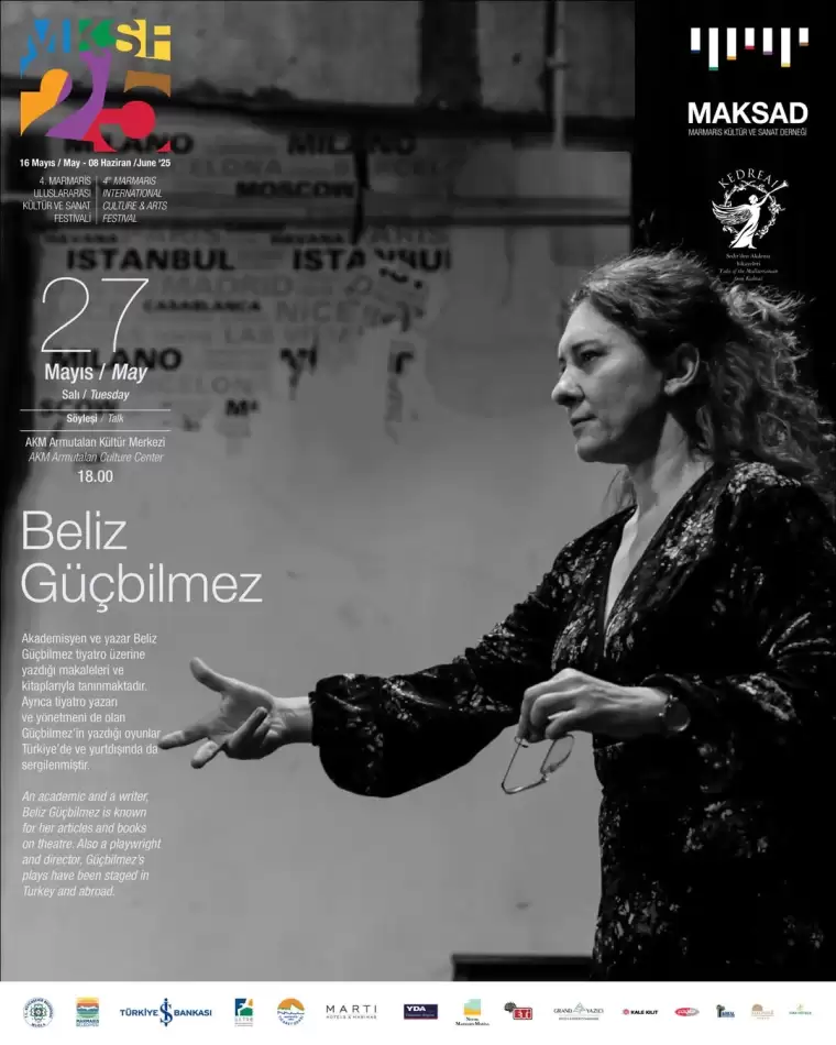 27 Mayıs Salı günü saat 18.00’de AKM Armutalan Kültür Merkezinde Akademisyen ve yazar Beliz Güçbilmez ile kurmaca ve gerçek ilişkisi üzerine bir söyleşi yer alacak.