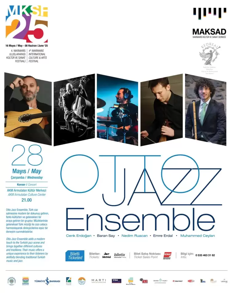 28 Mayıs 2025 Çarşamba akşamı Armutalan Kültür Merkezi’nde saat 21.00’de Grammy Ödüllü Cenk Erdoğan “OTTO JAZZ Ensemble” ile seyirci karşısına çıkacak. Topluluk, Emre Erdal, Muhammed Ceylan, Baran Say, Ekin Cengizkan ve Cenk Erdoğan’dan oluşuyor.