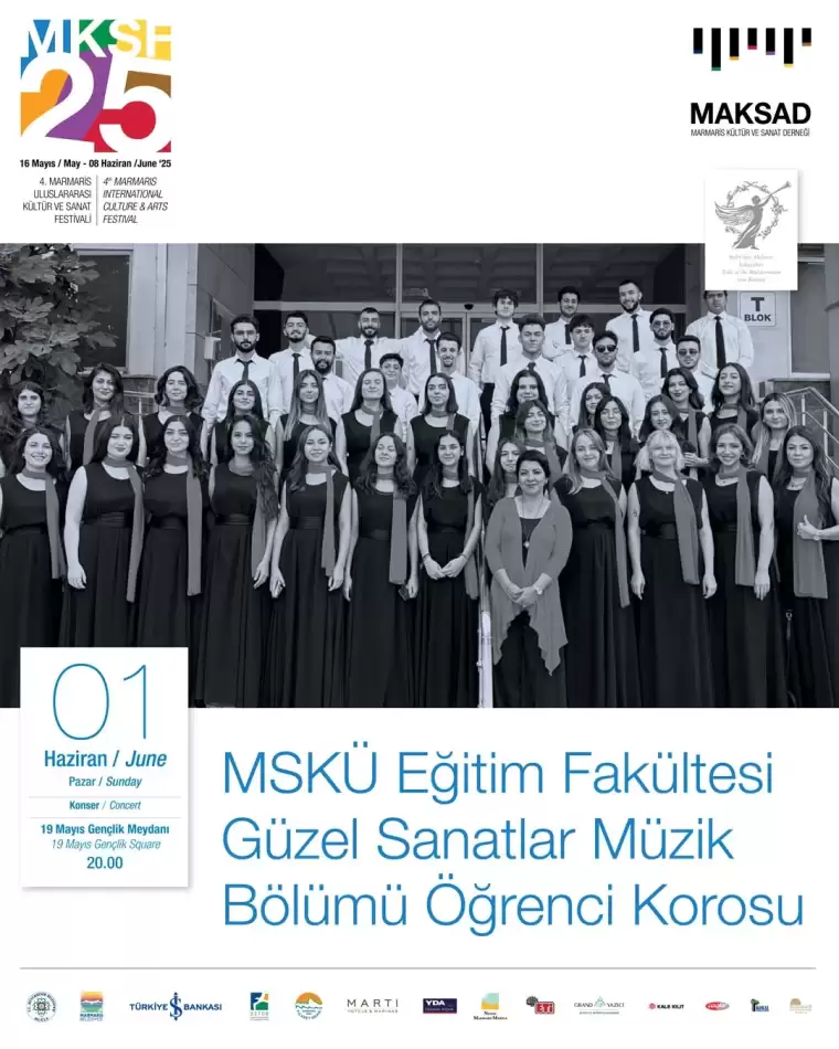 5 Haziran 2025 Perşembe akşamı saat 20.00’de Muğla Sıtkı Koçman Üniversitesi Eğitim Fakültesi Güzel Sanatlar Müzik Bölümü Öğrenci Korosu 19 Mayıs Gençlik Meydanında Marmarisliler ile buluşacaklar.
